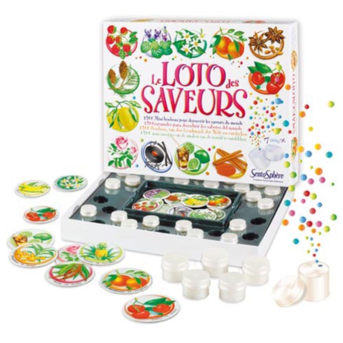Reconnaître 30 saveurs en dégustant des micro bonbons, très peu dosés en sucre, est un plaisir sain, ludique et plein de rebondissements. En plus de votre goût, le Loto des Saveurs fait également intervenir votre vue et vos réflexes.