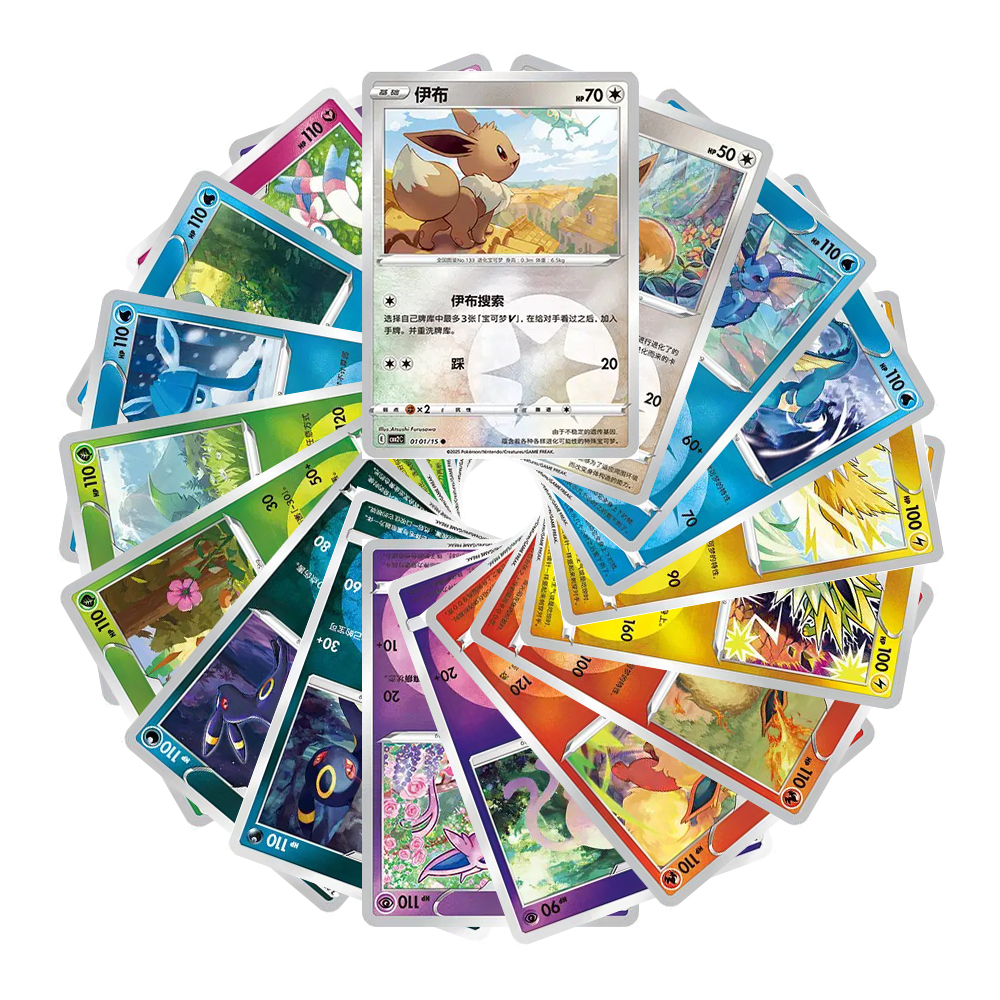 Toutes les cartes communes de cbb2c de Évoli, Aquali, Voltali, Pyroli, Mentali, Noctali, Phyllali, Givrali et Nymphali en version 'Type'.