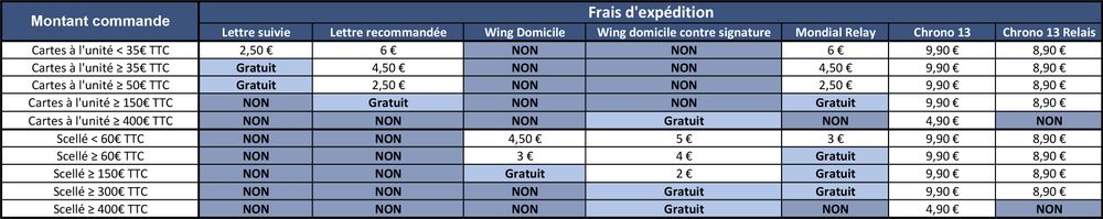 Frais d'expédition pour la France métropolitaine :